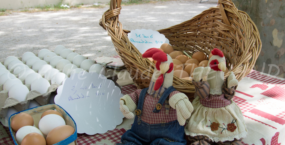 - des œufs et des poulets de Jacqueline, agricultrice bio à Maillane,